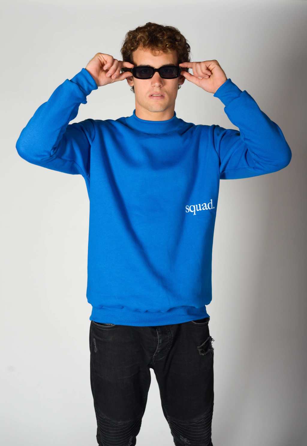 Buzo de friza Azul Oversize con cuello alto, mangas largas y ribb a tono.