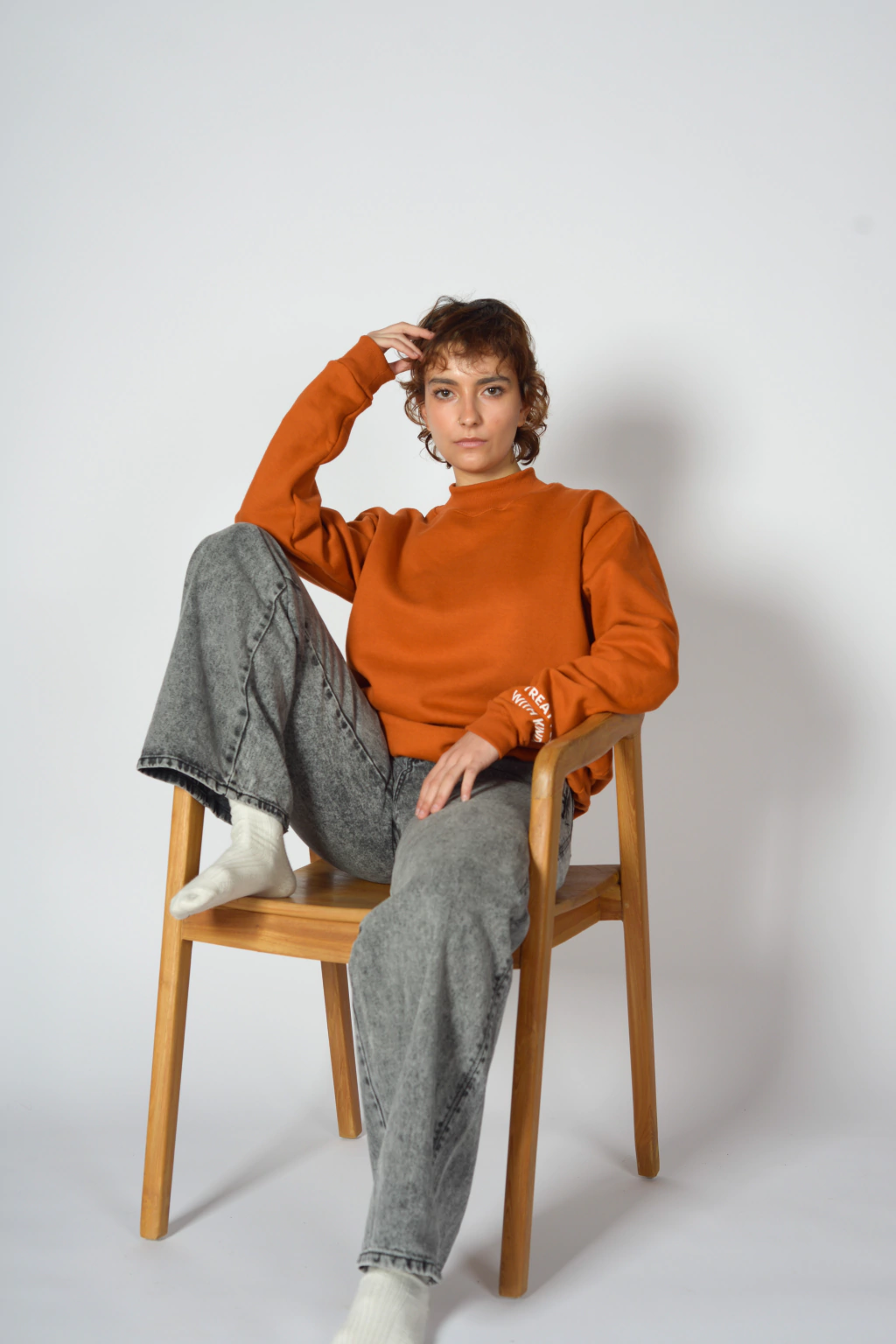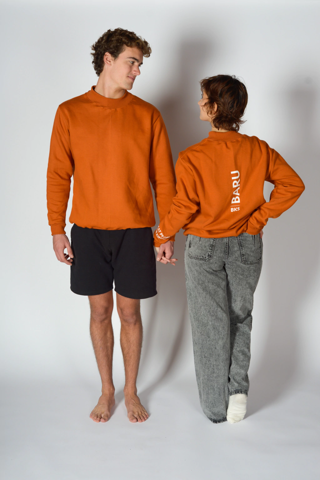 Buzo de friza Ladrillo Oversize con cuello alto, mangas largas y ribb a tono.